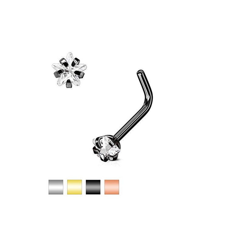 Autiga Nose Piercing Stud Nose Stud Nose Piercing Curved Zirconia Star Crystal L Shape, Stainless Steel, Cubic Zirconia