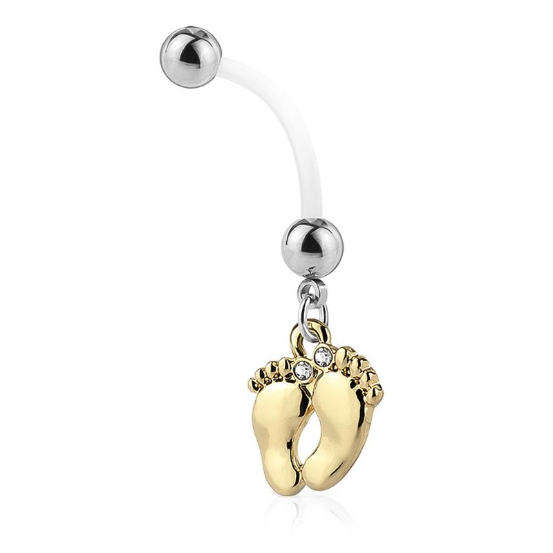 Autiga Pregnancy Piercing - Bio-Flex Flexible Plastic Baby Feet Belly Button Piercing - Can be Shortened, Plastic