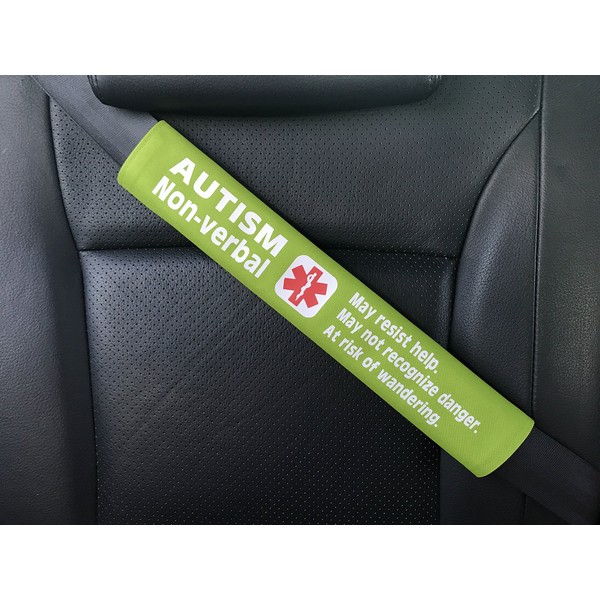 Autism Non-Verbal Medical Alert Seat Belt Cover (Bright Green)