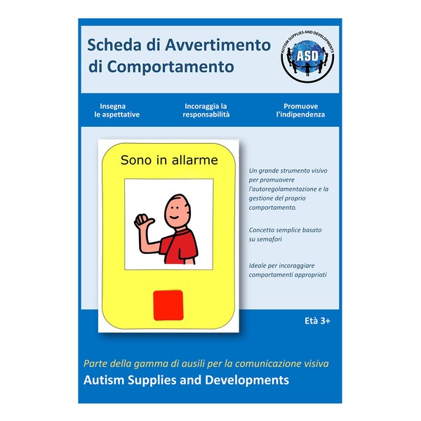Autism Supplies & Developments IT_WARN Visual Behavior Warning Sign Plastic Italian Blue