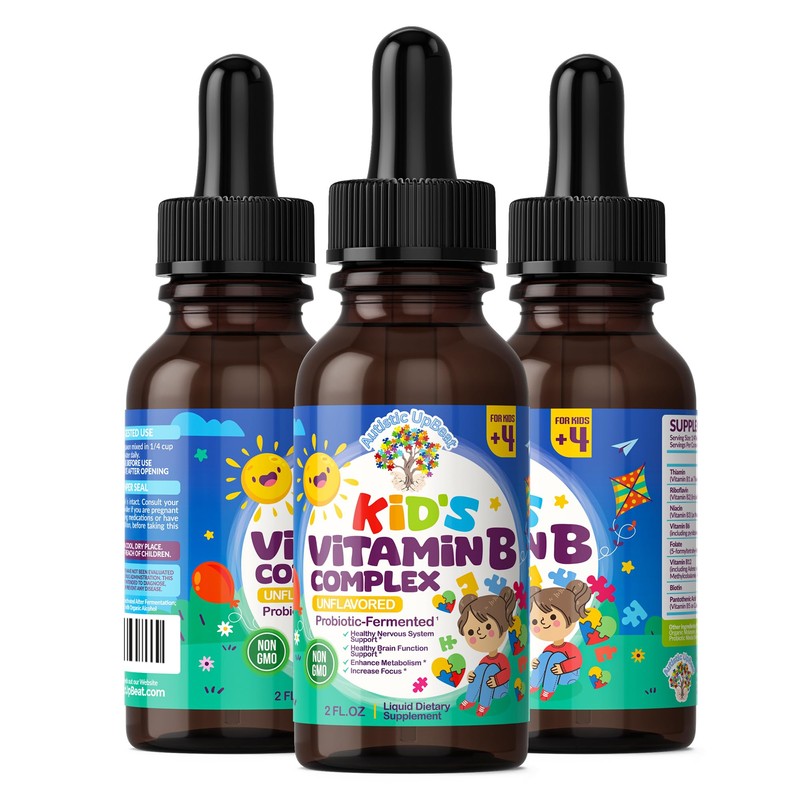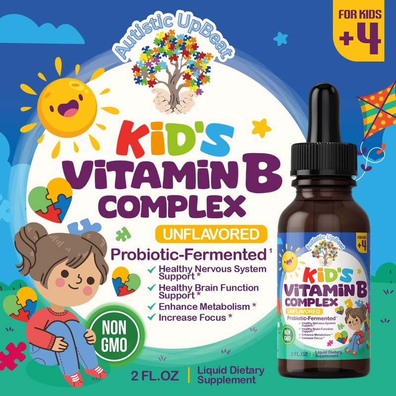 Autistic UpBeat's Kid's Vitamin B Complex, a revolutionary liquid dietary supplement designed to boost your child's health and well-being. Packed with the power of probiotic fermentation, this product goes beyond the ordinary, providing comprehensive support for a healthy nervous system, enhanced brain function, and improved metabolism.