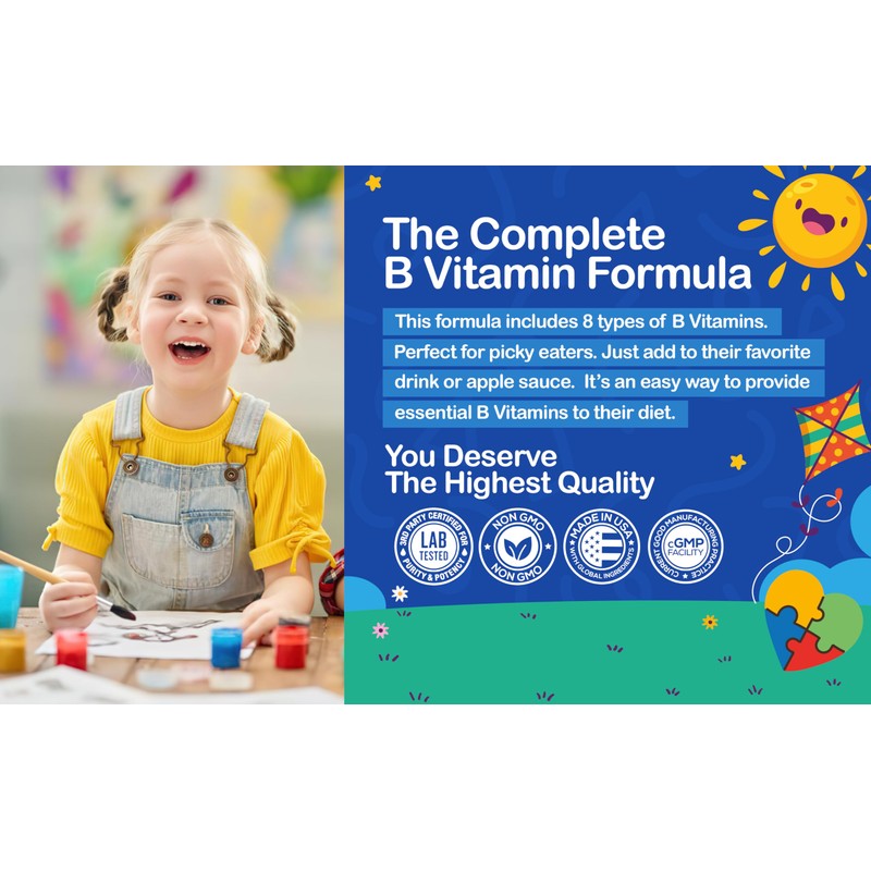- HEALTHY NERVOUS SYSTEM SUPPORT: Comprehensive B Vitamin Blend: With a spectrum of B vitamins, including B1, B2, B3, B5, B6, B7, B9, and B12, our product actively supports a healthy nervous system, vital for cognitive and behavioral development. These essential B vitamins play a crucial role in maintaining the health and proper functioning of nerve cells, providing a solid foundation for your child's overall health.
