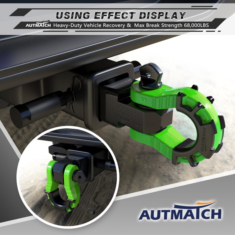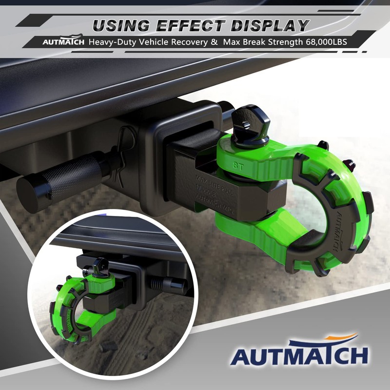 AUTMATCH Shackle Hitch Receiver 2" with 3/4" Mega D Ring Shackle and 5/8" Trailer Hitch Lock Pin, 68,000 Lbs Break Strength Heavy Duty Receiver Towing Kit for Off-Road Vehicle Recovery, Black & Green