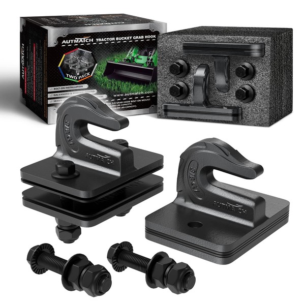 The AUTMATCH Heavy-Duty Tractor Bucket Grab Hook Provides Superior Towing Power and You Can Change Your Skid Steer Loader To Be A More Versatile Equipment With This Heavy Duty Grab Hooks. Easy To Install Through Bolt On The Tractor Buckets, Skid Steer Bucket, Skid Loader Bucket, Forklift, Trailer and Backhoe and Works Well With Chains, U-Hooks and Winch Straps, Winch Hitches To Secure Your Cargo or For Towing Anchors and Improve Work Efficiency.