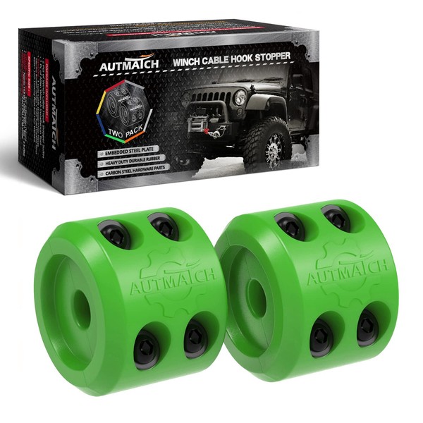 AUTMATCH Winch Cable Hook Stopper (2 Pack), Silicone Rubber Winch Stopper for Wire & Synthetic Rope, Winch Line ATV UTV, Shock Absorbent, Prevent Pulling Bounce and Abrasion, Green