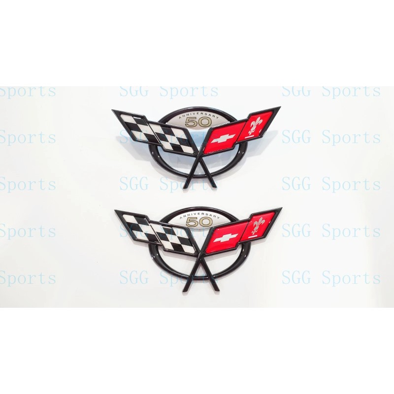 AUTO 2PC 1997-2004 C5 Corvette Black Front Rear 50Th Anniversary Cross Flags Emblems