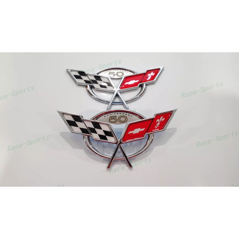 AUTO 2PC Chrome Front Rear 50Th Anniversary Cross Flags Emblems 1997-2004 C5 ...