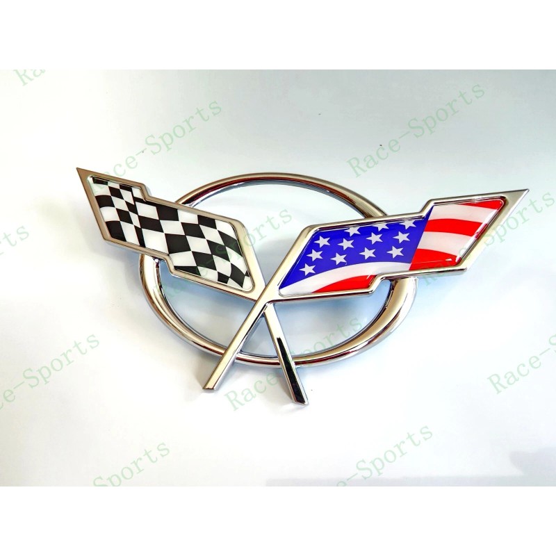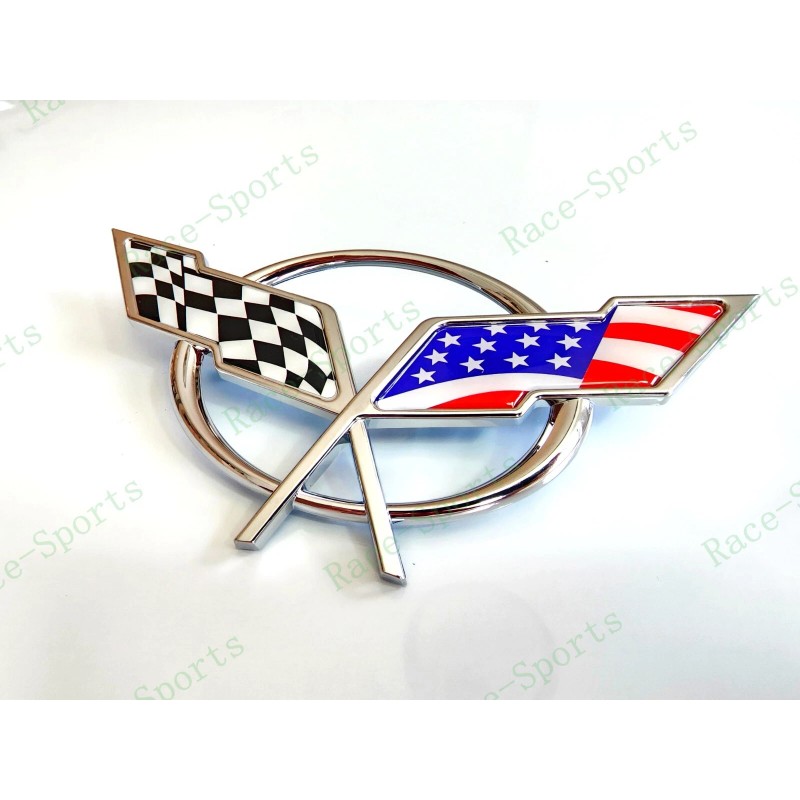 AUTO 2PC Chrome Front & Rear Deck Lid Cross Blue US Flag Emblem 1997-2004 C5 Corvette