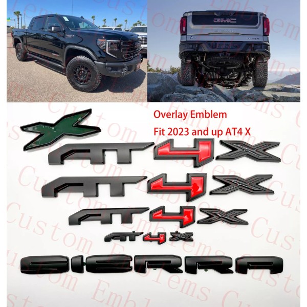Auto 5PCS Grill Doors Rear Matte Black AT4X OVERLAY Emblem 2023+ GMC Sierra 1500