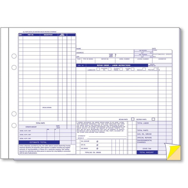 AUTO BODY TOOLMART Service Repair Order Forms