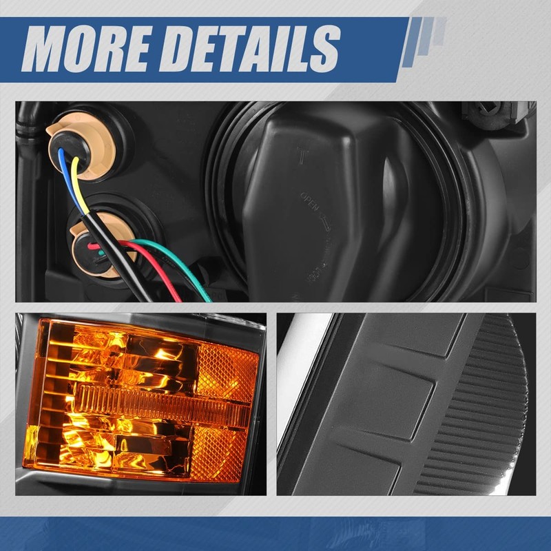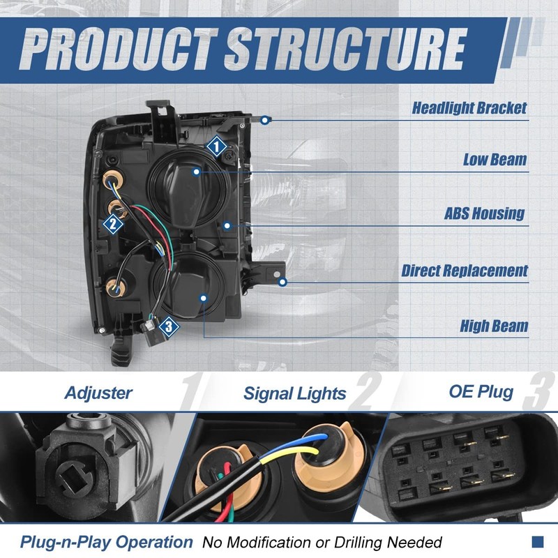 - Easy and Quick to Install - Direct bolt-on fitment with Plug-n-Play style headlamps are easy to install, requiring no modification or drilling. Ideal OE replacement for factory unit to replace old and worn headlights. Come with complete set of headlight with turn signal(Driver and Passenger Side).