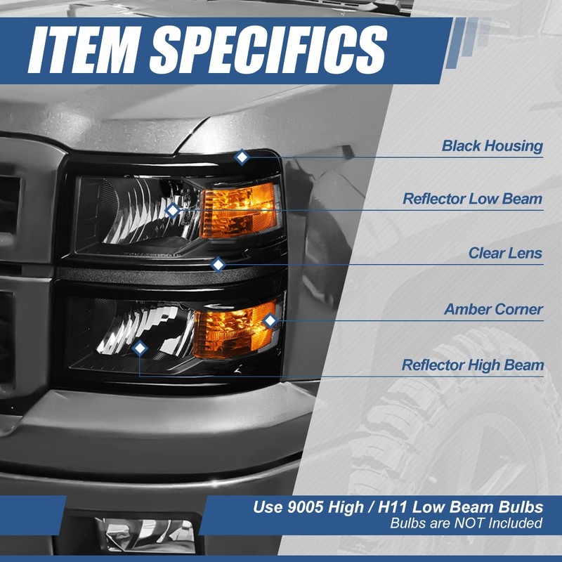 - Vehicle Compatibility - Headlights assembly compatible with Chevy Silverado 1500 2014-2015, fits models with HALOGEN headlights Only.