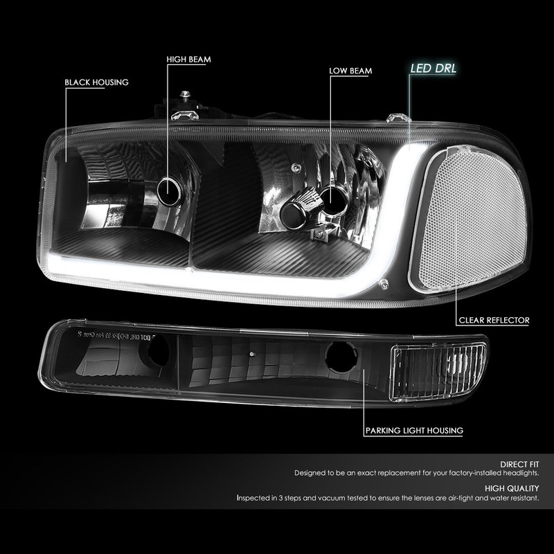 Auto Dynasty LED DRL Black Clear Side Headlight w/Bumper Lamps+Tool Kit Compatible with GMC Sierra Yukon 99-07