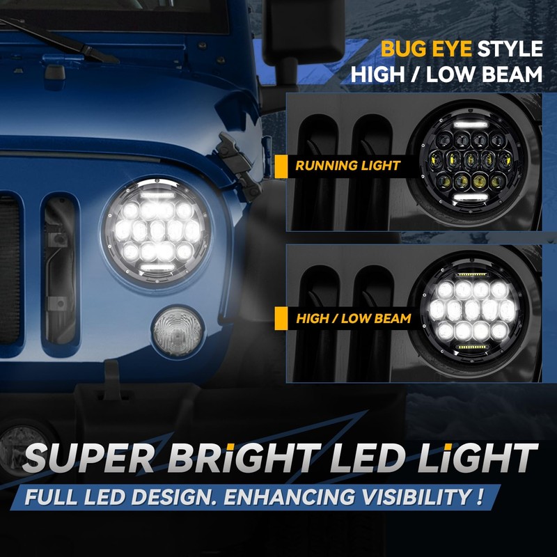 - ๐๐๐ก๐ข๐๐ฅ๐ ๐๐จ๐ฆ๐ฉ๐๐ญ๐ข๐๐ข๐ฅ๐ข๐ญ๐ฒ - Full LED Headlight Assembly Compatible with Jeep CJ5 1959-1983, Jeep CJ7 1976-1986, Jeep Scrambler CJ8 1981-1985 , Jeep Wrangler(TJ) 1997-2006 , Hummer H1 1992-2006 , Hummer H2 2003-2009 , Jeep Wrangler 2007-2017, Jeep Wrangler JK 2018, Must Reuse Factory Headlight Mounting Light Brackets.