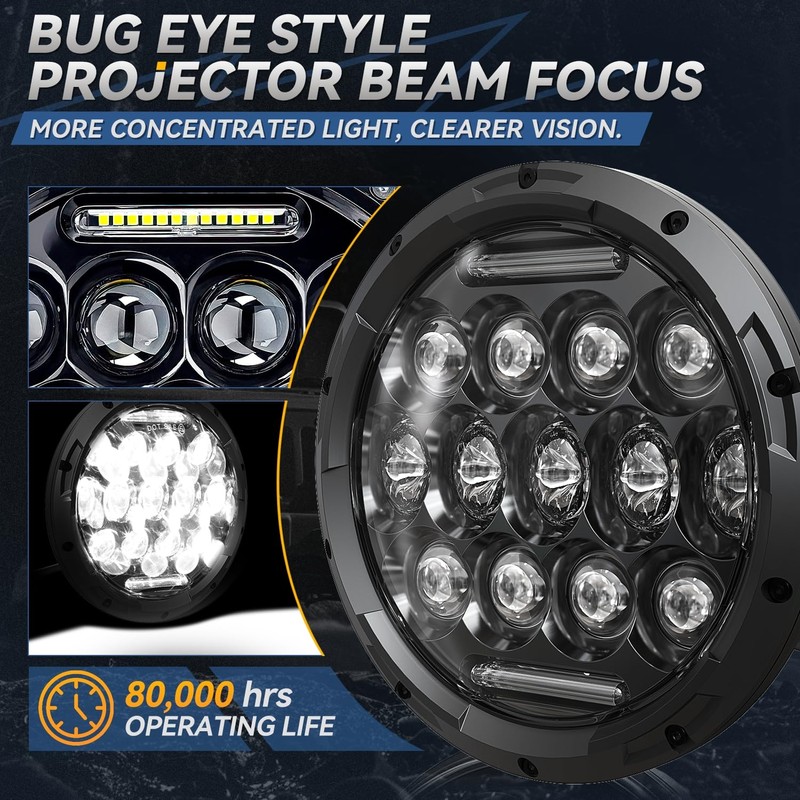 - ๐๐จ๐ฅ๐ข๐ ๐๐จ๐ง๐ฌ๐ญ๐ซ๐ฎ๐๐ญ๐ข๐จ๐ง ๐๐๐ฌ๐ข๐ ๐ง - Full LED Headlight Assembly made of high-quality Polycarbonate Lens and high-efficiency heat dissapating aluminum housing with IP67 waterproof performance and 80,000 hours operating life.