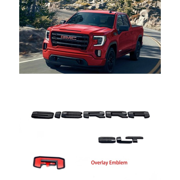 Auto-Emblem Tailgate Rear SIERRA SLT Overlay Emblems For Sierra 1500 2019-2024 Gloss Black