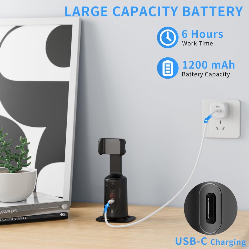 • 【360° Face Tracking & Smart AI】Auto Face tracking tripod adopts smart AI system technology and passed 5000 intelligent sensor tests, to accurately identify the face or body and 360° rotate steadily with your movement. You can adjust the pitch angle according to different postures (sitting/standing).