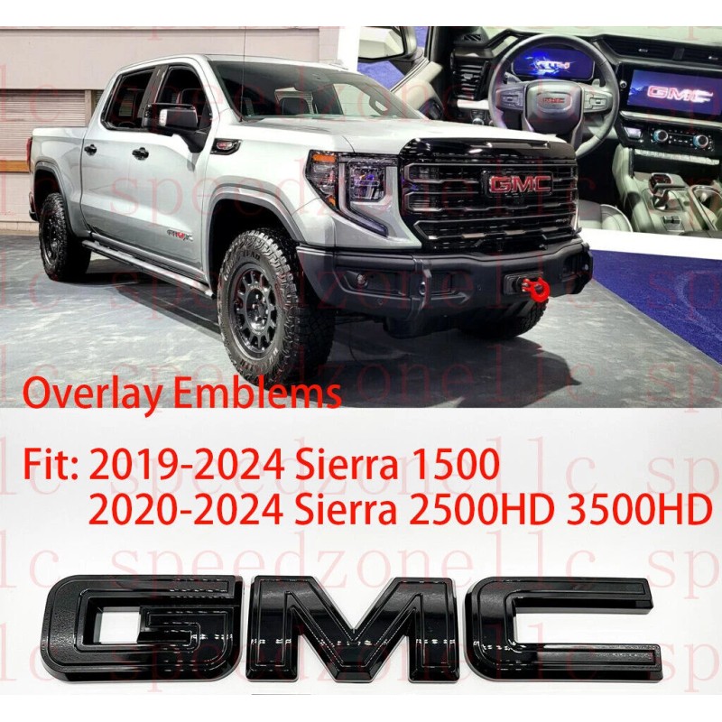Auto Front Gloss Black Emblem Overlay 2019-2024 GMC Sierra 1500 2500HD 3500HD
