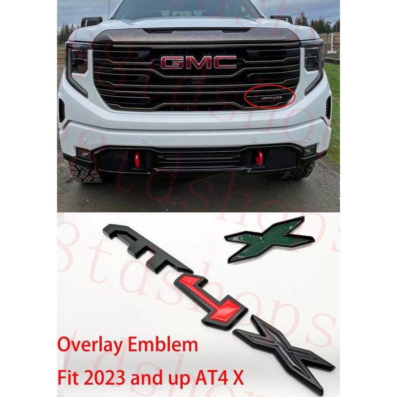 Auto Front Grill Matte Black Red AT4X OVERLAY Emblem 2023+ GMC Canyon and sierra 1500