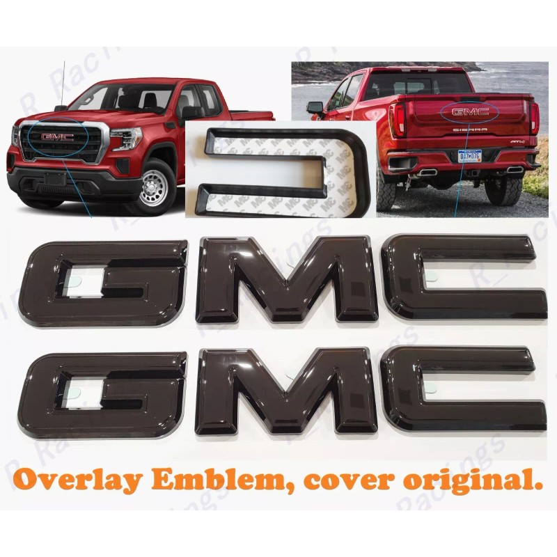 Auto Front & Rear Gloss Black Overlay Emblem 2019-2025 GMC Sierra 1500 2500HD 3500HD