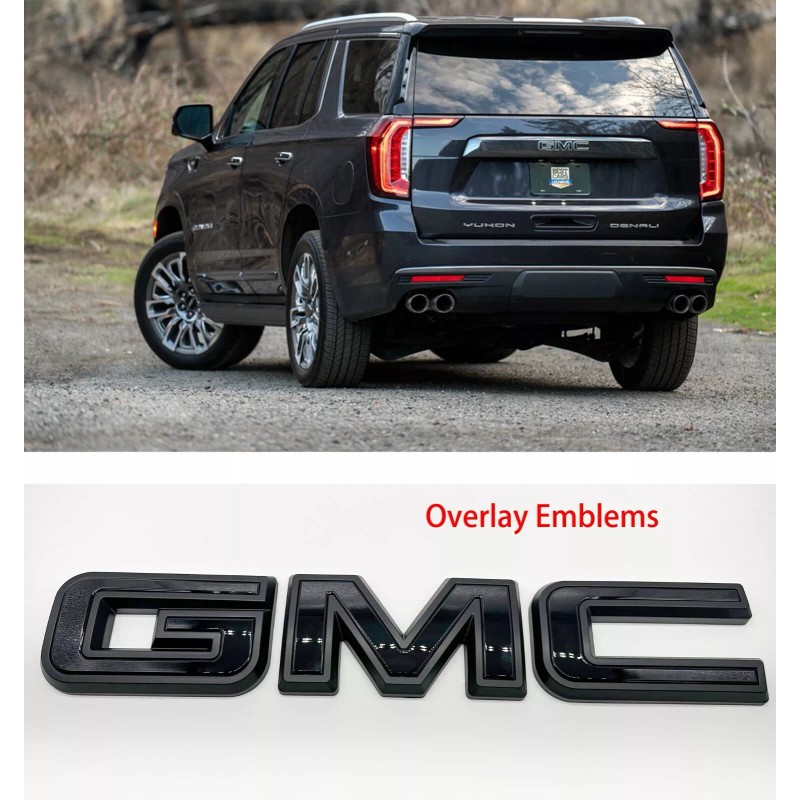 Auto GMC 2021-2024 GMC YUKON Rear Tailgate Gloss Black Matte Black OVERLAY Emblem