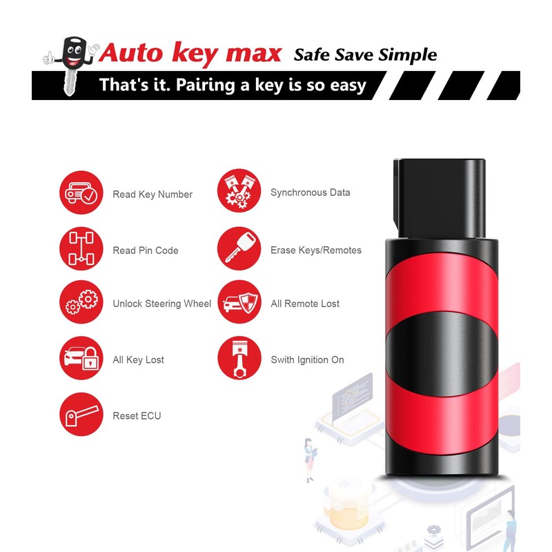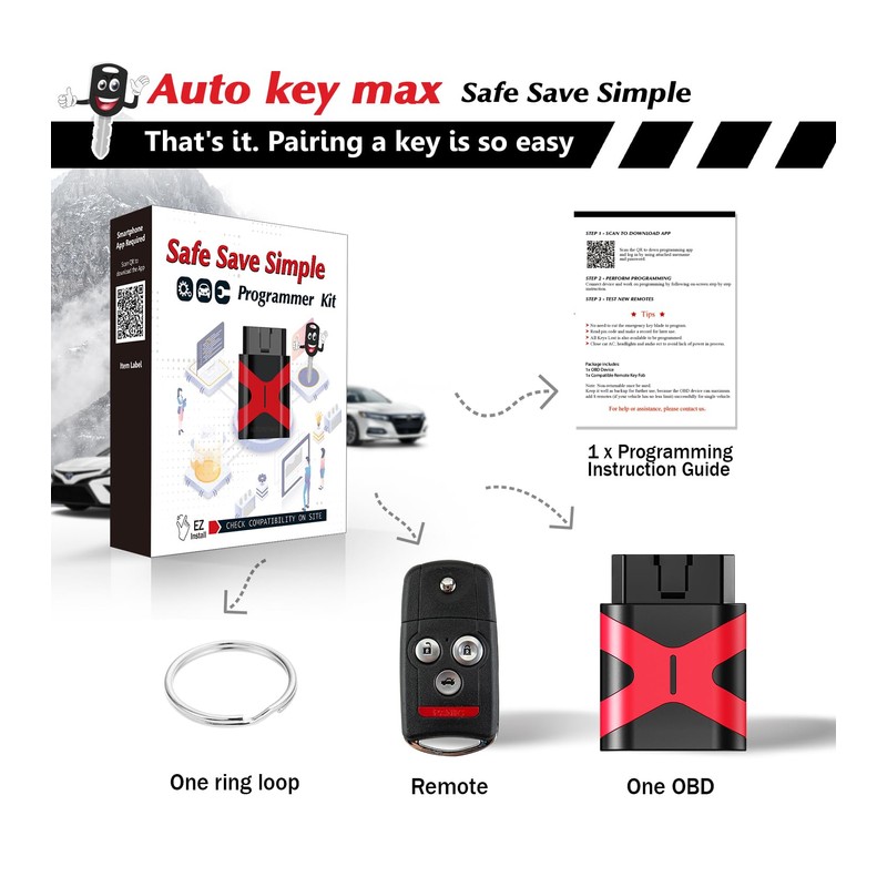 - Enhanced Security with Replacement Kit: Each remote key fob kit includes a key fob and programmer, Communicate with the vehicle in safe mode.which is only compatible with a single car's VIN code and can be paired with up to 30 keys (programmer only works with one car) Do the ALL key Lost Function。