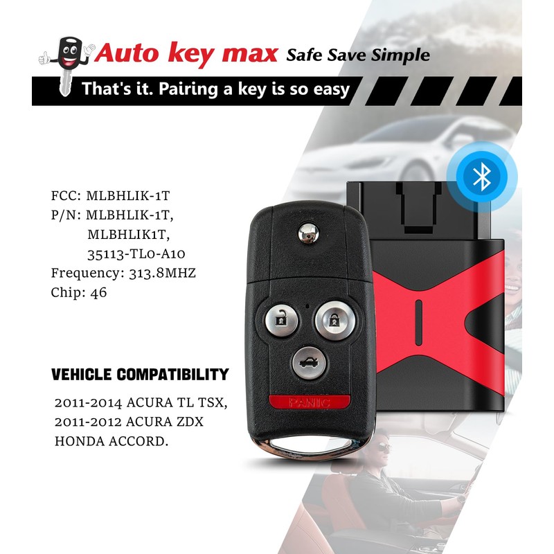 - Please note compatibility: Our replacement key fob is designed to be compatible with 2011-2014 ACURA TL TSX 2011 2012 ZDX . Please match your FCC ID# MLBHLIK-1T