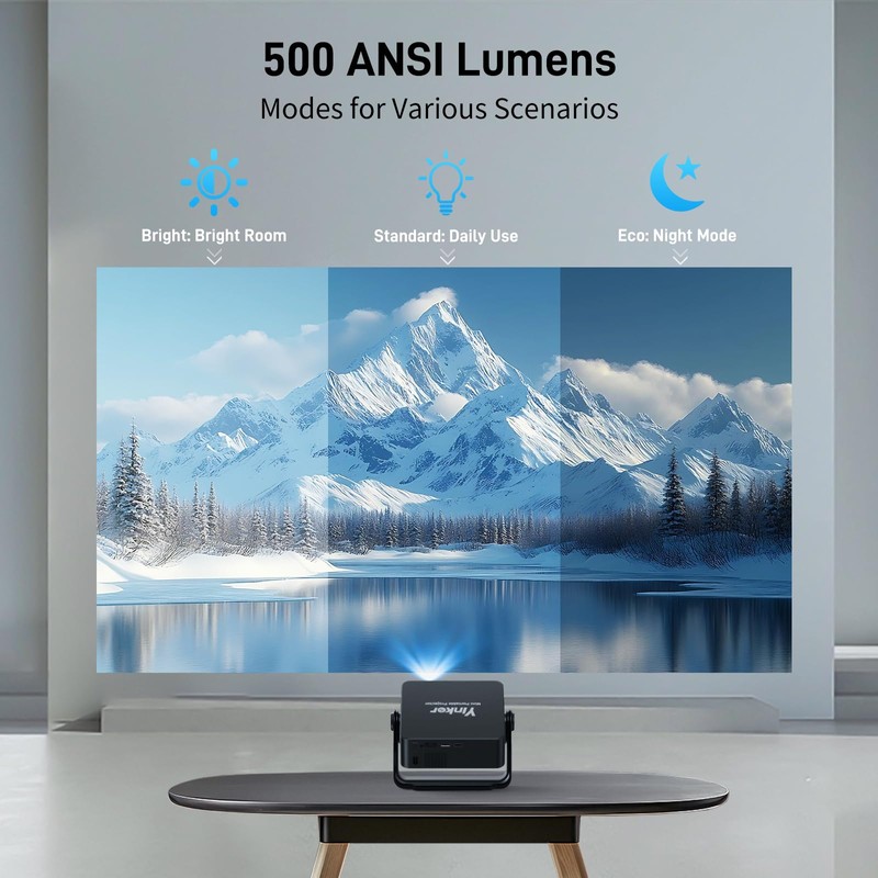 - [360° Tool-free Stand] The Yinker Mini Smart Projector builds with 360° Adjustable Stand, can effortlessly projects images and videos from any angle. No matter you are sitting on your living room, loft house or laying on the bed. Without the hassle of extra tool or complicated setup. The Rotating Handle is easy to take anywhere for indoor and outdoor occassions.
