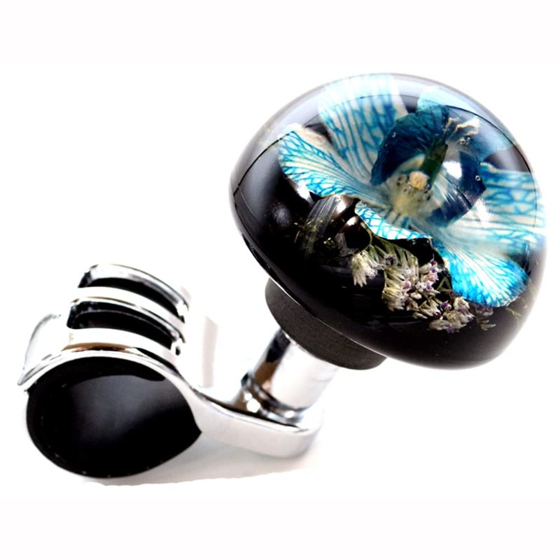 Auto Land Underwater Flower Handle Spinner Blue Steering Spinner Knob Real Orchid Flower Artwork 2.6 inches (65 mm) Thick Grip