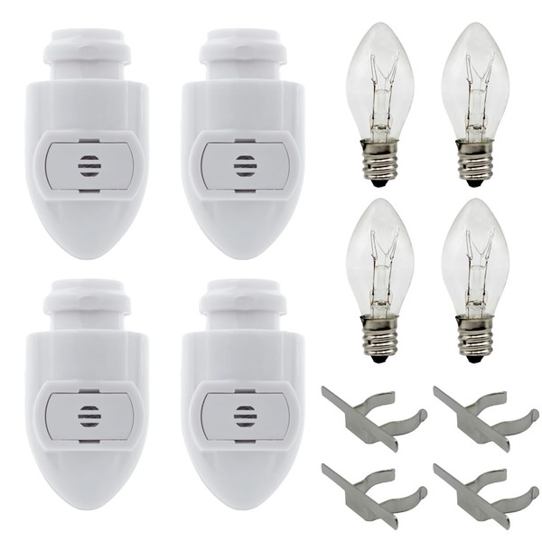 Creative Hobbies Auto On Sensor Plug in Night Light Module Includes 4 Bulbs and 4 Metal Clips, Great for Making Your Own Decorative Night Lights, Pack of 4 (White Sensor)