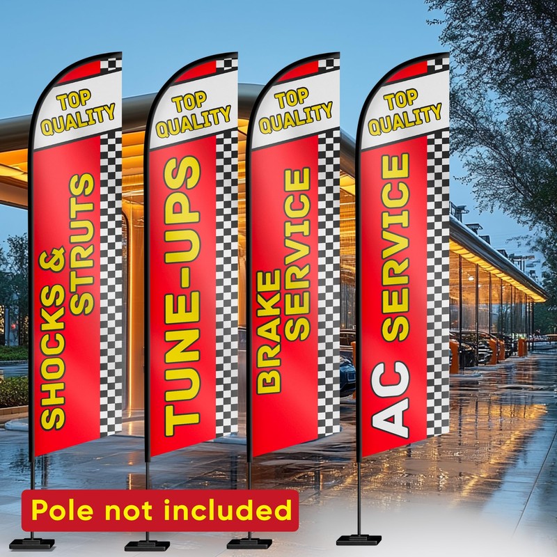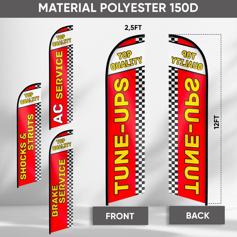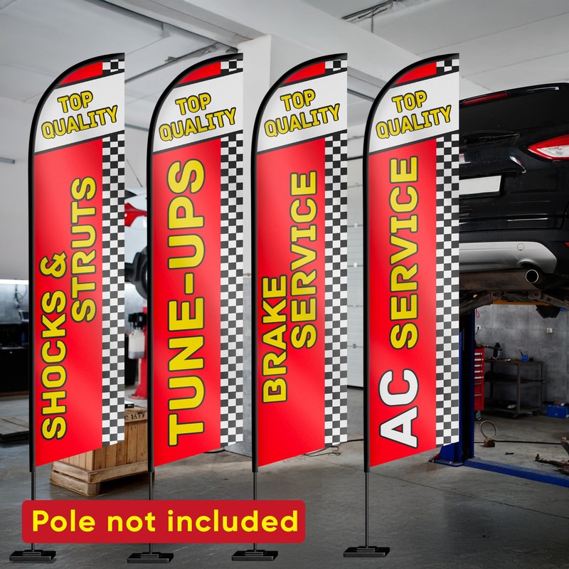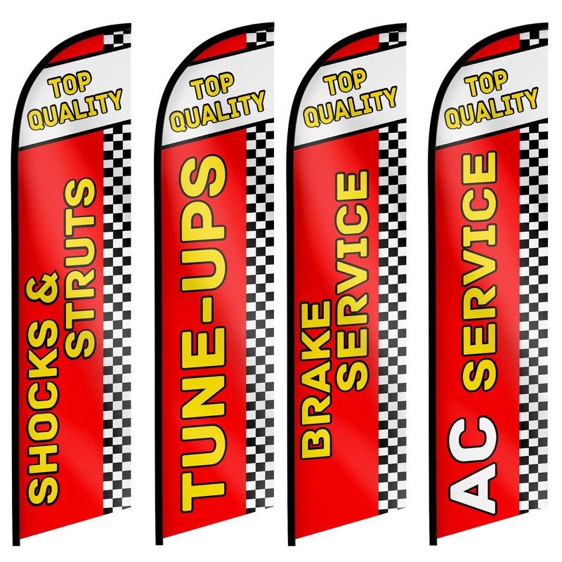 Auto Repair Shop Feather Flag - Flags Automotive Brake Service, Shocks & Struts, Tune-UPS, AC Service Swooper Flag for Auto Services Supplies Set of 4-12ft x 2.5ft (Pole not included)