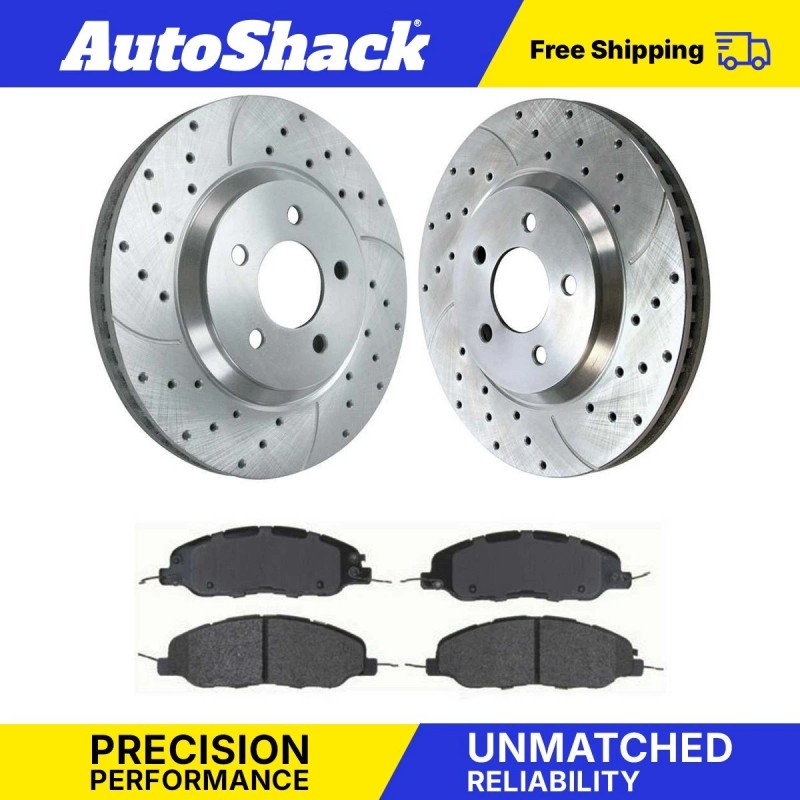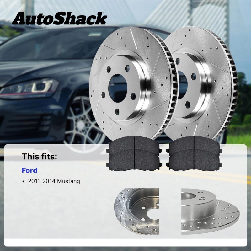 Auto Shack Front Drilled Disc Rotors Ceramic Brake Pads for 2011-2014 Ford Mustang V6