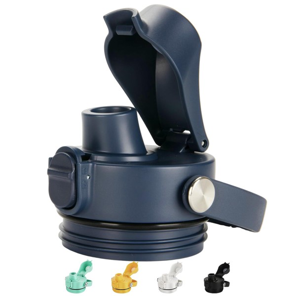 Auto Spout Lid for YETI Rambler Bottles, Fits 18/26/36/64 oz Bottles, Chug Replacement Lid Cap with Push-Button Lid and Flexible Handle, Navy