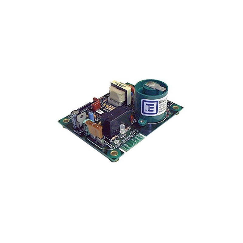 Dinosaur UNIVERSAL IGNITER BOARDS - The key features of the Dinosaur boards are: FUSE PROTECTION - A replaceable fuse on the board protects the board's 12 Volt circuits from short-circuit damage. DUAL SENSE - Flame sense works through high voltage connector and edge connector simultaneously. EXTERNAL SENSE -Connector on the board for external sense wire. DIAGNOSTIC-AID LED on board is green to show power to board. Red to indicate power to gas valve. VOLTAGE REGULATOR -Cleans up the 12 Volt supply power. Available with spade (shown) or post high voltage connector. Two sizes to choose from. Cover sold separately. Note: Do not use cover in furnaces. It will melt. Universal Igniter Board without Post. Small.