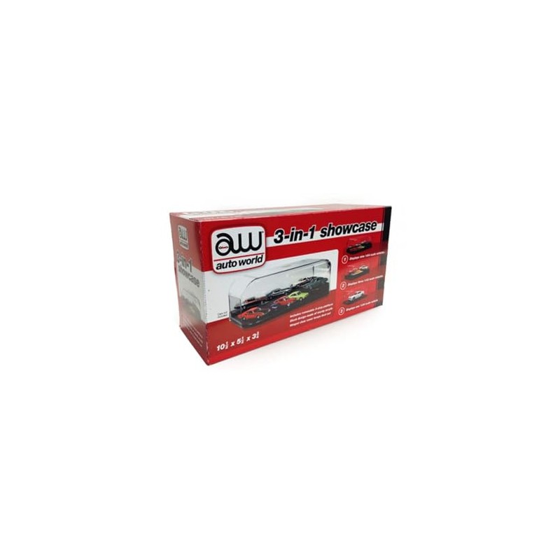 By far the coolest, most versatile display we've ever offered. This multi- function case can be used to showcase a single 1:24 scale diecast. Or use the included tiered stand to showcase three 1:43 scale cars or up to nine 1:64 scale cars! The innovative hinged cover allows you to access your cars by simply tilting the contoured cover up without disturbing the cars positioning. You're going to love this case! Features Precision Triple Function 1:24, 1:43 and 1:64 Scale Display Case Special Hings Top Tilts Open Incredible Display Options