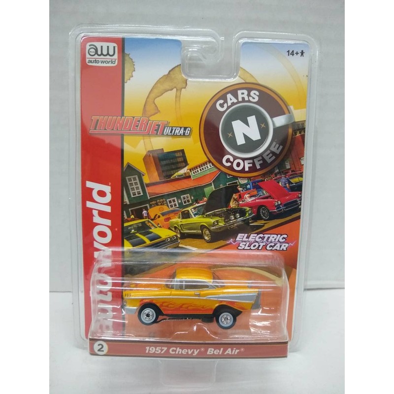 Auto World SC379-2A Cars N Coffee 1957 Bel Air HO Scale Electric Slot Car - Orange
