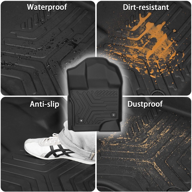- PERFECT FIT - Size:38.19*21.46*5.91inch all weather floor mats set are made specifically compatible with 2015 - 2024 2025 F-150 SuperCrew. Our 3D tech ensures a perfect fit on your vehicle, and our raised grip technology ensures they stay in place.