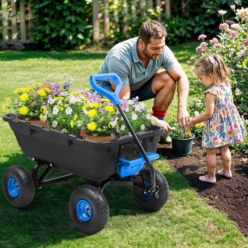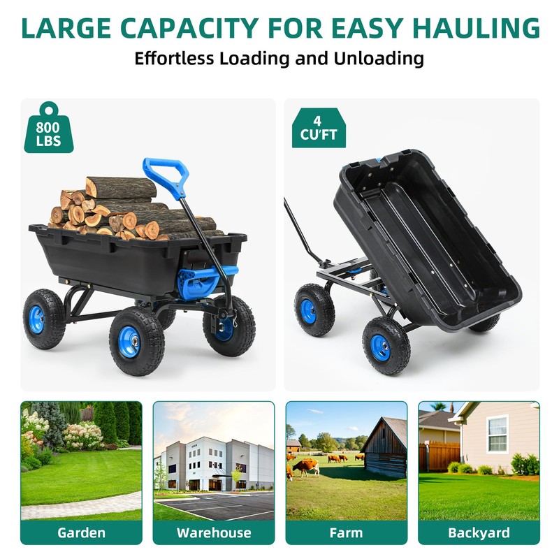 Autodaya 800lb Garden Dump Cart,Utility Wagon Wheelbarrows with Quick-Release System&4 Pneumatic Tires,Heavy Duty Yard Dump Wagon with Steel Frame for Yard, Farm, Gardenand Halloween Hauling (Blue)