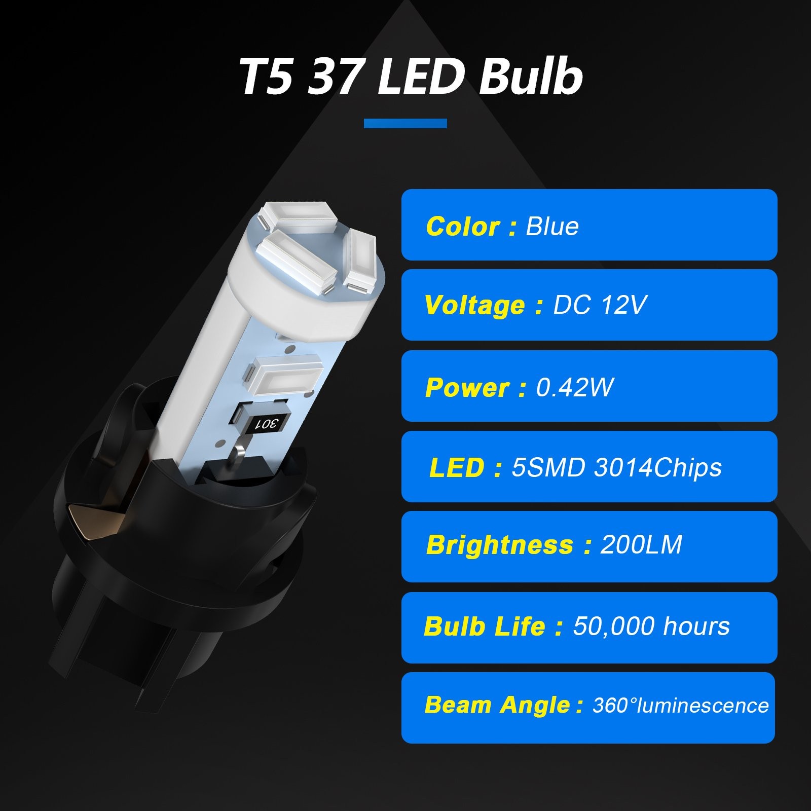 This Listing is for 20 pieces Blue T5 3014 LED bulbs,High quality and Brand New! Each bulbs contains 3014 chips which are much brighter than your stock OEM yellowish traditional lamps.