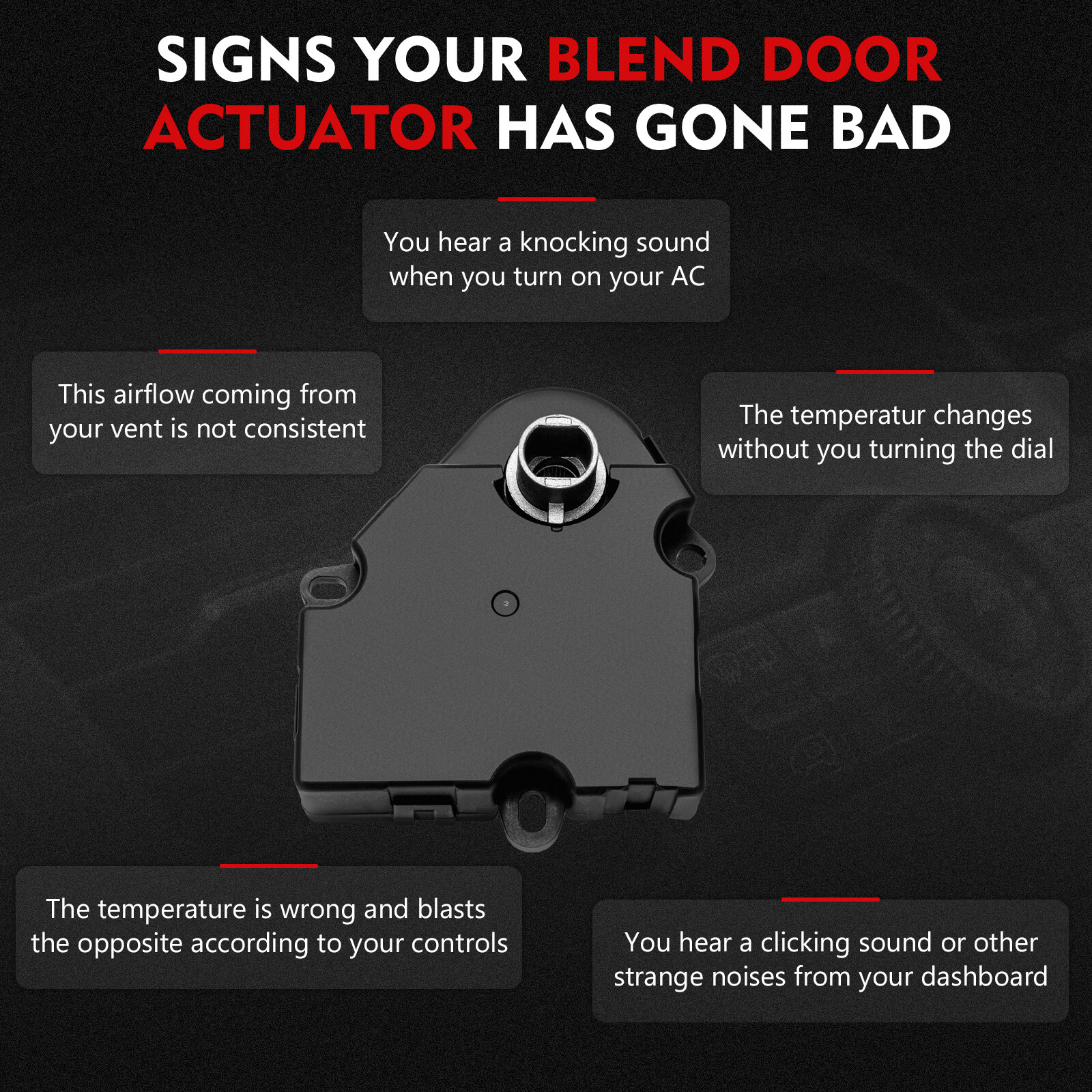 Features: Brand New Item Type: Heater Blend Door Actuator Direct replacement - this HVAC heater blend door actuator fits and functions like the original equipment part on specified vehicles. Quality construction - durable plastic housing and motor/circuit board. Excellent value - OE quality at a lower price. Vehicle tested - has undergone on-vehicle testing to ensure proper fit and performance.