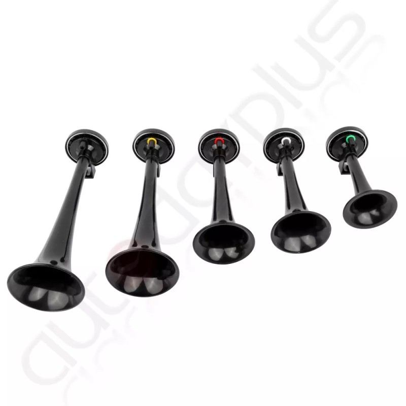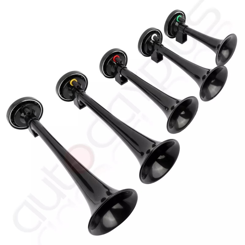 This musical air horn plays the distinctively American tune “DIXIE”, also known as Dixie’s Land, made popular by the American TV series The Dukes of Hazzard. The Kit comes with five strong black ABS trumpets, a 12V heavy duty compressor, hose, relay and mounting hardware. This kit has all the bells and whistles you would expect, and generates immediate attention.