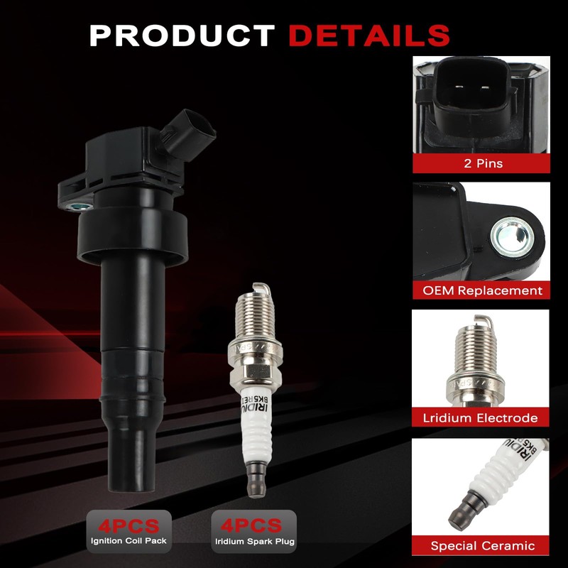 Package Includes: 4 x Ignition Coils, 4 x Spark Plugs