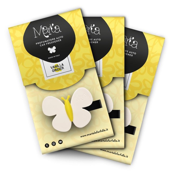 Autoduft zum Einstecken in die Lüftungsschlitze Vanille und Ingwer 3 Stück Marta La Farfalla
