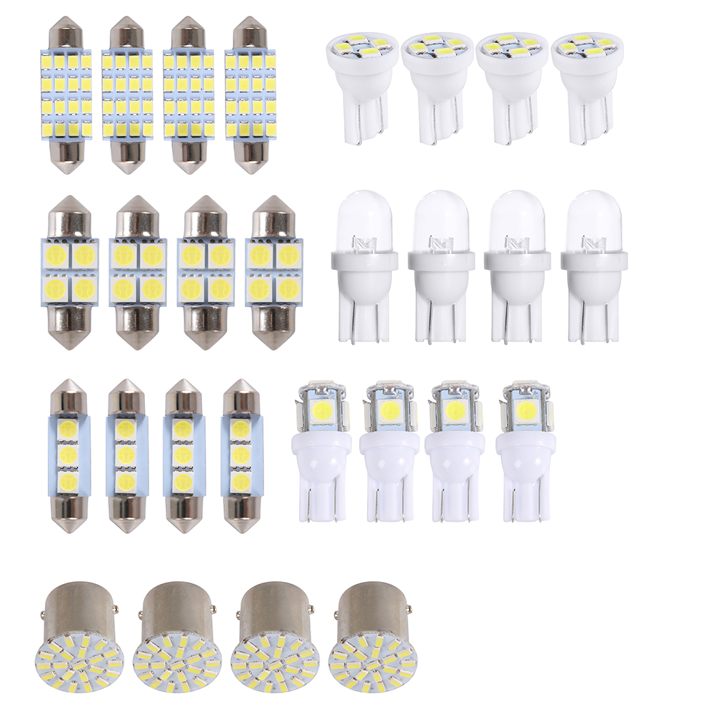 autogear_shop 28Pcs LED Car Interior Inside Light For Dome Trunk License Plate Lamp Bulb Kit