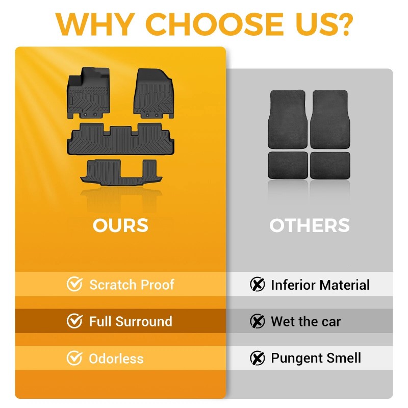 🚗Durable: Better temperature resistance than PVC. The mats made friendly environmentally contain no cadmium, lead, or any harmful PVC. The TPE material is extremely wear-resistant but also remains flexible in extremely cold weather.