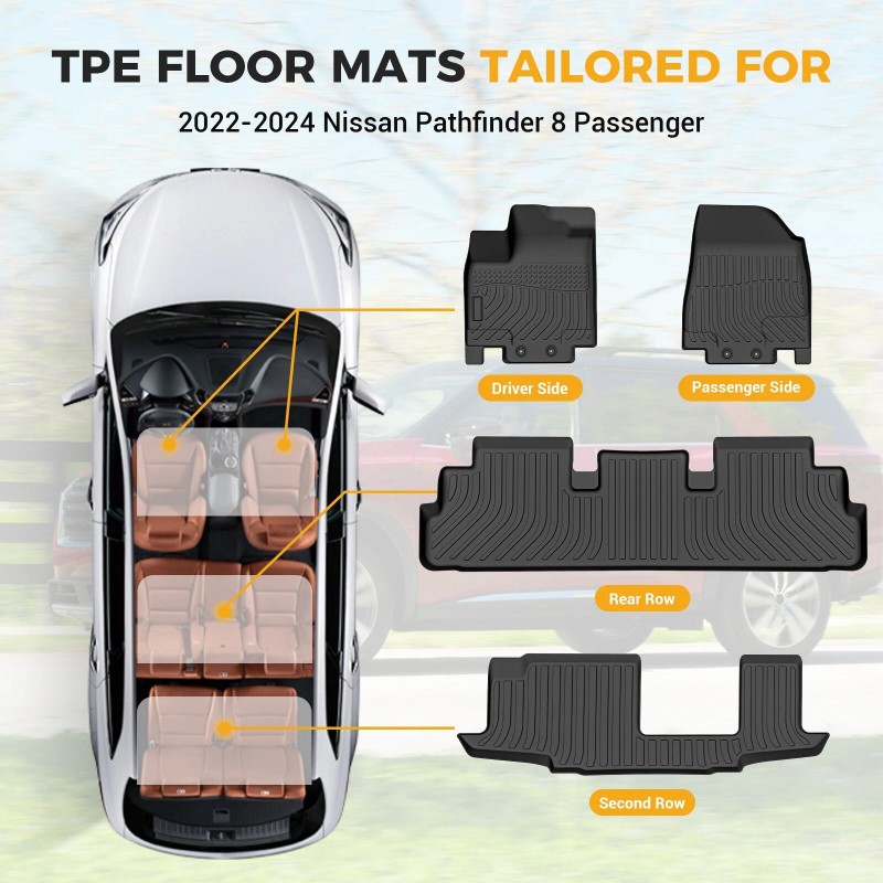 Autohai Floor Mats for Nissan Pathfinder 8 Passenger 22-24 Infiniti QX60 7 Passenger
