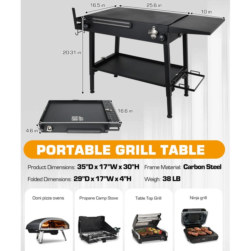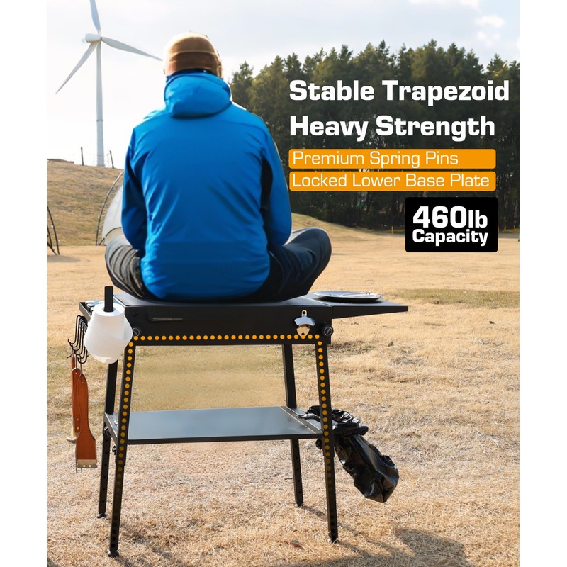 - 【Versatile Outdoor Cooking Table】The tabletop fit for 17"/22" Blackstone griddle, Ninja grills, Ooni pizza ovens, tabletop grills, propane camping stove, and other outdoor cooking equipment. Perfect for backyard BBQs, camping trips, RV kitchens, or as a picnic tables for outdoors.