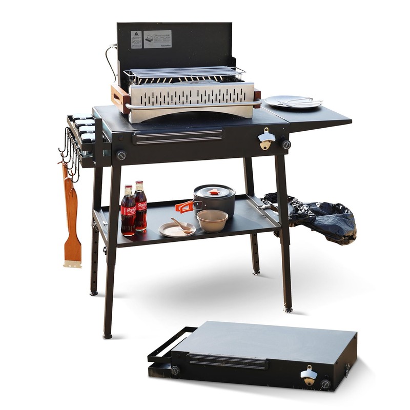 - 【Ample Storage & Prep Space】Features magnetic Knife holder, paper towel holder, bottle opener, seasoning tray, and trash bag hook. Plus a 10" x 17" BBQ prep tables offer extra space for food and tools.