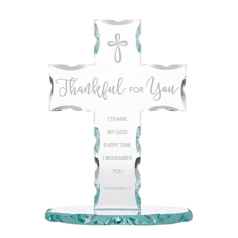 Autom Christian Brands Inspirational Gifts - Laser Engraved Standing Glass Cross, 7.13-Inch, Thankful for You
