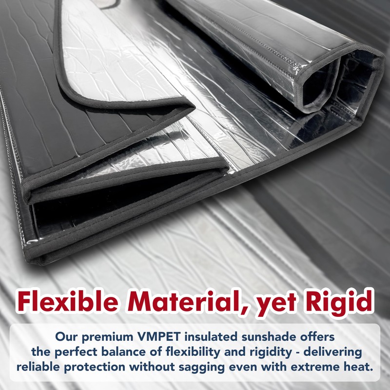 - Built Tough to Last: Constructed with high-quality, multi-layer insulation (foam core, insulated back layers, and reflective mylar film) for long-lasting durability and effective heat reflection. Featuring a sturdy outer layers and a soft interior, this sunshade combines rigidity and flexibility for easy handling and reliable performance.